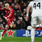 وتقدم الحارس إلى منطقة جزاء ريال مدريد، الذي كان يلعب بتسعة لاعبين، ونجح تروبين، في تسجيل الهدف على طريقة كبار المهاجمين، بضربة رأس رائعة.